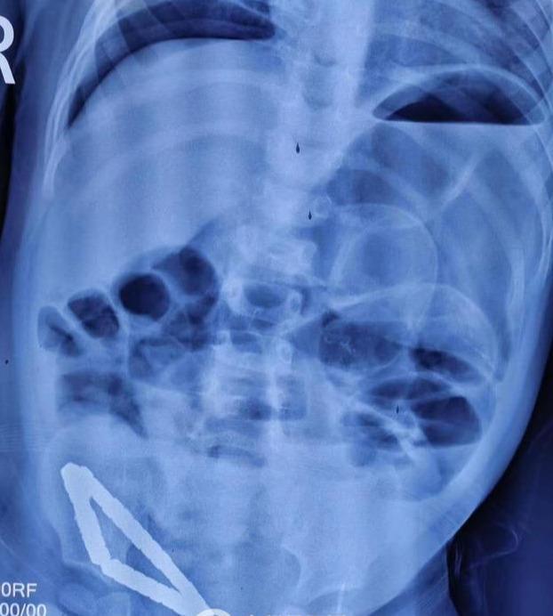 原來,花花因為好奇,誤吞了整整31顆磁力珠,造成小腸多處穿孔,情況危急。據(jù)花花父母介紹,孩子誤吞磁力珠玩具后,家長并不知道情況,而且由于孩子年齡比較小,也沒有向父母轉(zhuǎn)述自己吃了玩具。直到孩子突然開始嘔吐,發(fā)高燒,肚子脹,精神萎靡,這才引起家長注意。起初我們還以為是吃了不干凈的東西,帶孩子到當(dāng)?shù)蒯t(yī)院檢查才發(fā)現(xiàn),原來孩子的肚子里竟然“藏”了一串的磁力珠,并提示有消化道穿孔的情況,需要立即進(jìn)行手術(shù)取出。