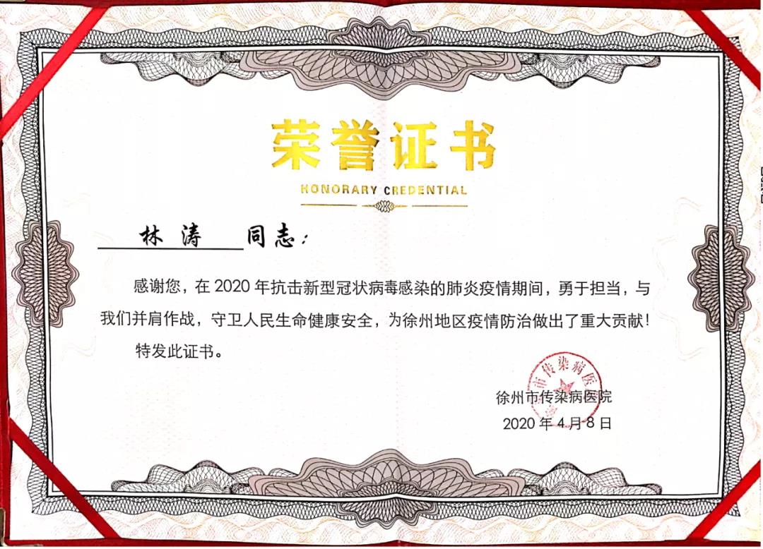 很快,醫(yī)院發(fā)來(lái)通知,徐州市治療新冠肺炎定點(diǎn)醫(yī)院——傳染病院需要支援,林濤是此次支援唯一的中醫(yī)。雖然不是去武漢,但同樣是抗擊新冠肺炎的一線。接到命令的他沒(méi)有猶豫,但是說(shuō)實(shí)話還是有些忐忑。去之前的一夜沒(méi)怎么睡好,想家庭,想孩子,更多的還是想自己的責(zé)任。