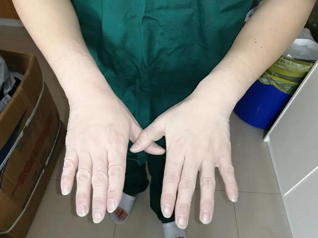 她充當(dāng)著外賣員,為無(wú)人照料的患者送來(lái)生活物品;她充當(dāng)配餐員,把飯菜發(fā)到病人手中” 她充當(dāng)護(hù)理員,幫病人喂飯,翻身拍背,清理大小便;她充當(dāng)保潔員,處理垃圾、消毒病區(qū);她充當(dāng)心理護(hù)理人員,開(kāi)導(dǎo)患者給他們加油鼓勁,重拾生命希望。每次脫下防護(hù)服全身已被汗液浸透,臉部留下深深的壓痕。她總是說(shuō)“雖然身體勞累,但看到患者懂你的付出,珍惜你的付出,就覺(jué)得再累也是值得的。”