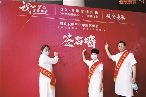 ◎文/徐報融媒記者 王任飛 通訊員 談建榮 圖/徐報融媒記者 車佳 為加強(qiáng)全市衛(wèi)生健康系統(tǒng)職業(yè)道德和精神文明建設(shè),持續(xù)深入開展新時代衛(wèi)生職業(yè)精神宣傳,樹立宣揚(yáng)先進(jìn)典型,進(jìn)一步弘揚(yáng)抗疫精神,8月18日,2020年度徐州市“十大醫(yī)德標(biāo)兵”“醫(yī)德之星”頒獎典禮暨慶祝第3個中國醫(yī)師節(jié)活動隆重舉行。此次活動由中共徐州市委宣傳部、徐州市文明辦、徐州市總工會、徐州市衛(wèi)生健康委員會聯(lián)合主辦。 打好疫情防控阻擊戰(zhàn) 9萬多名醫(yī)務(wù)工作者全力以赴 2020年8月19日是第3個中國醫(yī)師節(jié),宣傳主題為“弘揚(yáng)抗疫精神,護(hù)佑人民健康”。連日來,我市衛(wèi)生健康系統(tǒng)圍繞這一主題開展多種形式的宣傳,旨在展示抗疫期間醫(yī)務(wù)人員勇往直前的形象,進(jìn)一步弘揚(yáng)抗疫精神。 抗疫一線發(fā)生過怎樣的故事?抗疫期間,徐州醫(yī)護(hù)人員有著怎樣的表現(xiàn)?徐州衛(wèi)生健康系統(tǒng)戰(zhàn)疫短片《淮海戰(zhàn)“疫”》以珍貴而生動的影像資料向我們一一展示。 庚子年初,新冠肺炎疫情打破了節(jié)日的歡樂。危急時刻,一聲聲號角擎起了血染的紅旗;一襲襲白衣,托起了生命的奇跡。 從發(fā)布突發(fā)公共衛(wèi)生事件一級響應(yīng)主動迎戰(zhàn),到全面打響疫情防控阻擊戰(zhàn),再到統(tǒng)籌疫情防控和經(jīng)濟(jì)社會發(fā)展“兩手抓、兩手硬”,在市委、市政府的統(tǒng)一領(lǐng)導(dǎo)下,徐州市衛(wèi)生健康委超前謀劃、主動作為,當(dāng)好徐州抗擊疫情的主力和參謀,有效阻止疫情蔓延,全市4594家醫(yī)療機(jī)構(gòu)、9萬多名醫(yī)務(wù)工作者英勇奮戰(zhàn),全力守護(hù)著徐淮大地人民的生命安全。 疫情來襲,離危險最近的地方,就是醫(yī)護(hù)人員的戰(zhàn)場。在這場沒有硝煙的戰(zhàn)爭中,疾控人員率先嗅到危機(jī),沖鋒在前與病毒交戰(zhàn);基層醫(yī)療人員站好崗、把好關(guān),嚴(yán)格落實預(yù)檢分診制度,加強(qiáng)疫情哨點監(jiān)測;還有堅守在隔離病房的醫(yī)生,不畏風(fēng)險,全身心地投入救治,為新冠肺炎確診患者帶去希望……不管年齡、身份,不分性別、職務(wù),成千上萬的白衣天使奮勇向前,把醫(yī)者的初心和使命都寫在了自己的抗疫行動上。 白衣為甲丹心為矛 匯聚磅礴力量捍衛(wèi)主戰(zhàn)場 1月25日,我市首次檢測發(fā)現(xiàn)新冠肺炎核酸陽性患者;2月17日起,我市實現(xiàn)新發(fā)病例零新增;3月12日,全市79例確診患者全部出院。在這場持續(xù)一個多月的生死較量中,我市確診患者實現(xiàn)零死亡、零漏診,醫(yī)務(wù)人員零感染。這一切的背后,得益于我市疫情處置工作的高效、有序,更離不開白衣天使們的全力以赴、勇于擔(dān)當(dāng)。 因為有著“銜接南北、承接?xùn)|西”的戰(zhàn)略地位,此次疫情防控阻擊戰(zhàn)中,徐州承擔(dān)著尤為重要的防控責(zé)任和防控壓力。在這一背景下,徐州市傳染病醫(yī)院、徐州醫(yī)科大學(xué)附屬醫(yī)院兩家定點救治機(jī)構(gòu)全力以赴,不僅成功救治79例確診患者,還創(chuàng)造了兩次疫情救治領(lǐng)域的全省先例。 作為其中一員,徐州市傳染病醫(yī)院結(jié)核科副主任高春景在疫情伊始就開啟了超人般的工作模式。當(dāng)時,徐州唯一一例危重癥患者,徘徊在危險邊緣。省、市專家組第一時間趕到,通過遠(yuǎn)程會診商討搶救方案。高春景與專家組一起參與會診,不分白天黑夜地密切關(guān)注病人。插管吸痰、SBT、漏氣試驗等輪番上陣,歷時一周,終于成功為患者拔管。 “生命有痛,幸得有‘醫(yī)’!身為醫(yī)者,我為這身潔白的戰(zhàn)袍而驕傲!”8月18日的慶祝醫(yī)師節(jié)活動現(xiàn)場,高春景激動地表白心聲。 此次戰(zhàn)“疫”,還刷新了我們對疾控人的認(rèn)識,讓我們見識到作為“幕后英雄”的他們,工作中是如何地敢拼敢干。比如來自徐州市疾控中心疾控科的蔣春梅。 疫情期間,一旦接到檢測出新冠肺炎陽性的信息,她和同事就需要即刻趕往醫(yī)院進(jìn)行調(diào)查。穿上防護(hù)服,與病人面對面交流,詳細(xì)了解病人去過哪些地方、坐過什么交通工具、接觸過什么人、還有整個發(fā)病過程等。這樣的忙碌,讓她無暇陪伴照顧兩歲的女兒,但她告訴自己:“要把對女兒的愛、對家庭的愛,轉(zhuǎn)化成對社會的責(zé)任,盡自己所能去保護(hù)更多的家庭和孩子。” 鼎力支援湖北保衛(wèi)戰(zhàn) 援湖北醫(yī)生火線抗疫顯擔(dān)當(dāng) 打贏這場戰(zhàn)“疫”,還要堅持“全國一盤棋”。疫情期間,徐州先后選派6批共258名醫(yī)務(wù)人員分赴湖北武漢、黃石等地開展醫(yī)療救援,選派的醫(yī)務(wù)人員數(shù)量位列全省第一方陣。這些白衣戰(zhàn)士在抗疫火線上充分發(fā)揮中流砥柱作用,充分彰顯了徐州精神,展現(xiàn)了徐州力量,為黨和人民交上了一份滿意的答卷。 施海和魏翠是其中的兩名“最美逆行者”;顒蝇F(xiàn)場,他們作為援湖北醫(yī)生代表分享了自己的抗疫故事。 施海,徐州市第一人民醫(yī)院呼吸內(nèi)科二病區(qū)副主任。作為徐州市首批援湖北醫(yī)療隊長,大年初二他告別父母妻兒,率領(lǐng)全隊23名隊員“逆行”出征。施海帶領(lǐng)隊員們爭分奪
