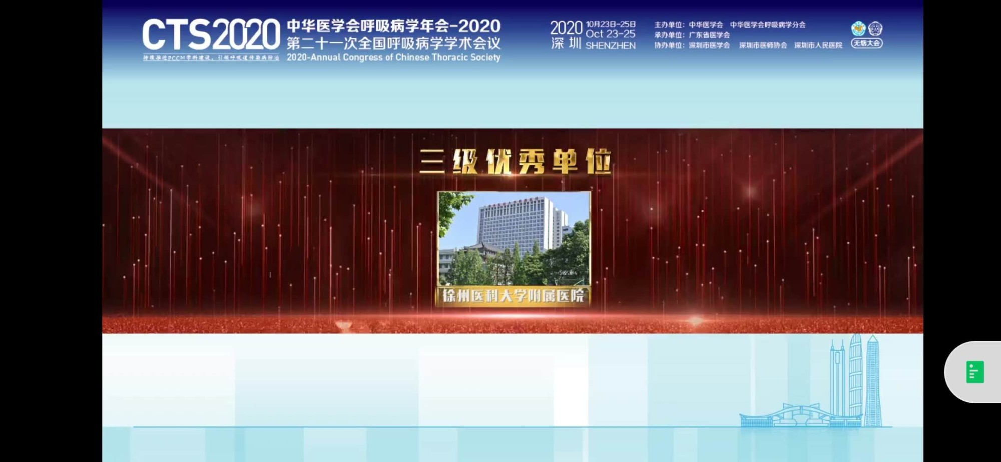 第二十一次全國呼吸病學(xué)學(xué)術(shù)年會于10月23日在深圳舉辦。會上宣布了國家PCCM科規(guī)范化建設(shè)的評定結(jié)果,徐州醫(yī)科大學(xué)附屬醫(yī)院呼吸與危重癥醫(yī)學(xué)科榮獲國家PCCM科(呼吸與危重癥醫(yī)學(xué)科)規(guī)范化建設(shè)認(rèn)證優(yōu)秀單位稱號。在本次通過認(rèn)證的375家單位(三級醫(yī)院92家,二級醫(yī)院67家,基層醫(yī)療機(jī)構(gòu)216家)中,三級優(yōu)秀單位僅有10家,達(dá)標(biāo)單位82家。