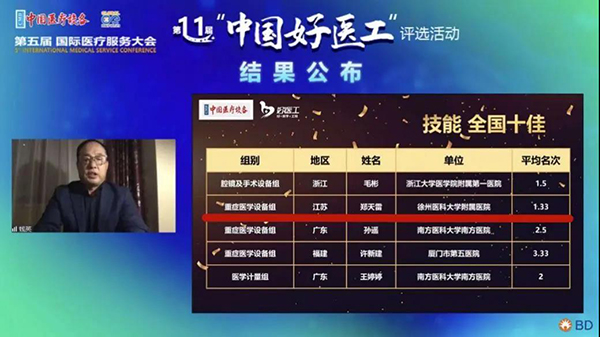 黃淮網(wǎng)  10月24日,第十一屆“中國(guó)好醫(yī)工”中國(guó)優(yōu)秀臨床工程師評(píng)選活動(dòng)線上決賽正式落幕。大賽傳來(lái)喜訊,徐醫(yī)附院設(shè)備處以綜合評(píng)分第一的佳績(jī),榮獲本屆“醫(yī)工結(jié)合,科技創(chuàng)新”獎(jiǎng)。鄭天雷工程師以平均名次第一的好成績(jī)獲得本屆重癥醫(yī)學(xué)設(shè)備組“中國(guó)優(yōu)秀臨床工程師( 全國(guó)十佳 )”稱號(hào)。