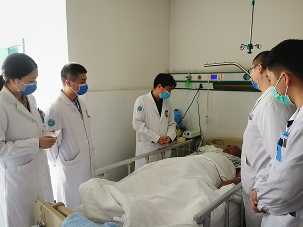 術(shù)后第二天,查主任查房指導(dǎo)患者進(jìn)行抗血栓的鍛煉。由于術(shù)后及時(shí)的抗感染治療,補(bǔ)充蛋白和輸血,患者身體恢復(fù)很快,精神也很愉悅。