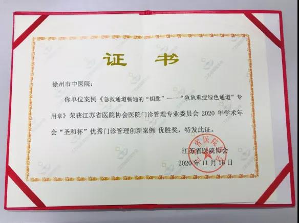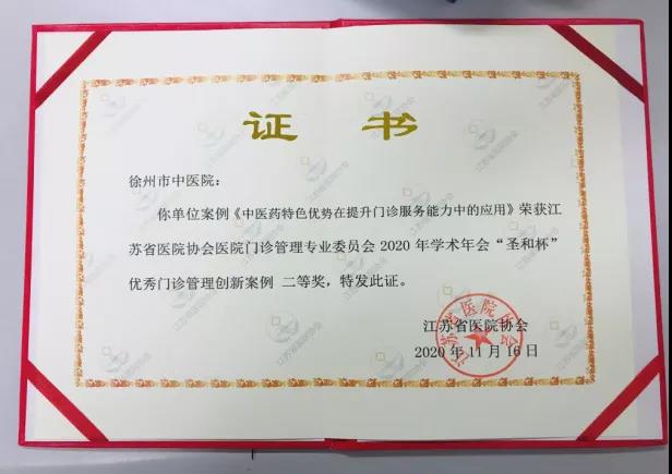 會(huì)議表彰了“優(yōu)秀門診管理創(chuàng)新案例”,徐州市中醫(yī)院此次申報(bào)的《中醫(yī)藥特色優(yōu)勢在提升門診服務(wù)能力中的應(yīng)用 》和《急救通道暢通的“鑰匙”——“急危重癥綠色通道”專用章》案例分別榮獲二等獎(jiǎng)、優(yōu)秀獎(jiǎng)。