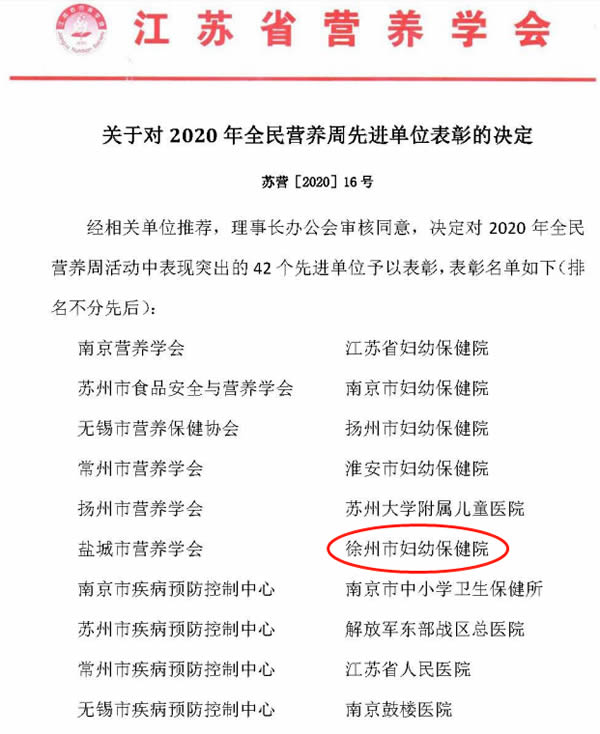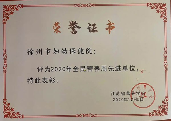 徐州市婦幼保健院獲“2020年全民營(yíng)養(yǎng)周先進(jìn)單位”稱號(hào)