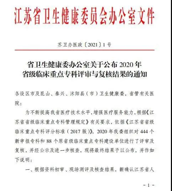 徐州市第一人民醫(yī)院新增四個省級臨床重點? 學科建設(shè)成績亮眼
