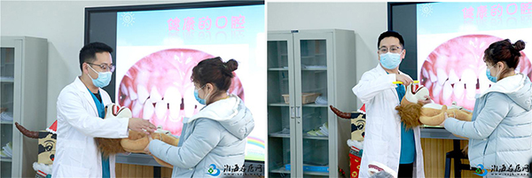 活動(dòng)開始,趙主任利用多媒體生動(dòng)有趣的講解了一口整齊、白亮、健康的牙齒的重要性。