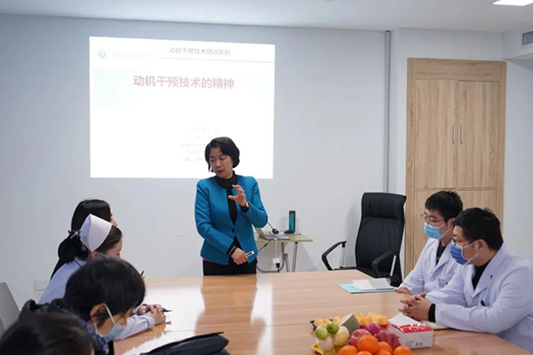 詳細講授了“動機談話技術(shù)”中,開放式提問、反應(yīng)性傾聽、識別矛盾心理、討論價值觀等12項具體技術(shù),指導(dǎo)醫(yī)護人員“慢病干預(yù)”APP的使用,通過現(xiàn)場與病人互動實踐,給予動機干預(yù)技術(shù)應(yīng)用的經(jīng)驗指導(dǎo)和分享。