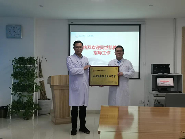吳世凱教授是江蘇徐州人,一直心懷徐州百姓,希望為徐州父老鄉(xiāng)親做自己的貢獻。經(jīng)過吳教授和徐州市一院共同努力于2020年獲得了徐州市衛(wèi)健委審核認證通過的徐州市衛(wèi)生高層次人才項目,吳教授成為徐州市一院腫瘤中心柔性引進衛(wèi)生高層次人才,使其為家鄉(xiāng)做貢獻的想法落地。因為疫情所致,吳教授先前多次在線上指導徐州市一院腫瘤中心臨床診療工作,對疑難病例進行討論指導,分享腫瘤新進展學術信息。