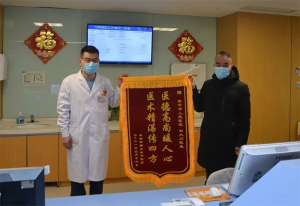 黃淮網(wǎng)  近日,12歲女孩琪琪(化名)的爸爸將一面寫有“醫(yī)德高尚暖人心,醫(yī)術(shù)精湛傳四方”的錦旗送給了新沂人民醫(yī)院兒科醫(yī)生胡大川,并連聲道謝。而這面錦旗的由來,則要從那個驚心動魄的夜晚說起……
