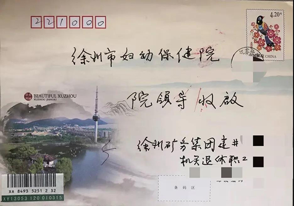 黃淮網(wǎng)(姚萌) 近日,徐州市婦幼保健院院辦收到一封特殊的來信,手書的信封上字跡雋秀有力,寄信人信息詳細(xì)清晰,在眾多來信中格外顯眼,一下子引起了工作人員的注意。