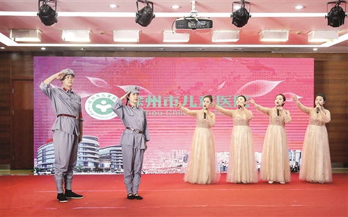 為了這次比賽,醫(yī)護(hù)人員精心編排了精彩的賽前暖場(chǎng)節(jié)目。小合唱《映山紅》,唱出了人們對(duì)紅軍的熱愛(ài)和期盼;《冼星海全集》將冼星海創(chuàng)作黃河大合唱的過(guò)程呈現(xiàn)舞臺(tái),氣勢(shì)磅礴;朗誦《建軍大業(yè)》更是激發(fā)出大家對(duì)革命烈士的崇敬、對(duì)國(guó)家和民族的熱愛(ài)。