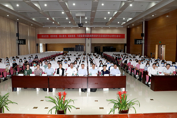 徐州醫(yī)科大學(xué)黨委常委、副校長(zhǎng)、徐州醫(yī)科大學(xué)附屬醫(yī)院黨委書記王人顥代表學(xué)校、附院致歡迎辭,向蒞臨指導(dǎo)和授課的領(lǐng)導(dǎo)、專家、學(xué)者和參與活動(dòng)的社會(huì)各界人士致以了熱烈的歡迎,向大家對(duì)學(xué)校和附院工作給予的關(guān)心、支持表示了衷心的感謝,簡(jiǎn)要介紹了徐醫(yī)附院3年來(lái)高質(zhì)量轉(zhuǎn)型發(fā)展所開展的工作和取得的成績(jī),指出徐醫(yī)附院通過(guò)加強(qiáng)黨的建設(shè)、以價(jià)值觀為引領(lǐng)推動(dòng)高質(zhì)量轉(zhuǎn)型發(fā)展的道路,與國(guó)務(wù)院辦公廳剛剛發(fā)布的《關(guān)于推動(dòng)公立醫(yī)院高質(zhì)量發(fā)展的意見(jiàn)》提出的“構(gòu)建新體系、引領(lǐng)新趨勢(shì)、提升新效能、激活新動(dòng)力、建設(shè)新文化、加強(qiáng)黨的全面領(lǐng)導(dǎo)”六大要求完全契合。
