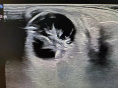 上圖是1例眼外傷患者眼內機化膜形成,彩超檢查:膜狀回聲內未檢測到血流信號