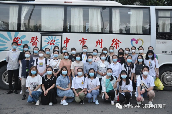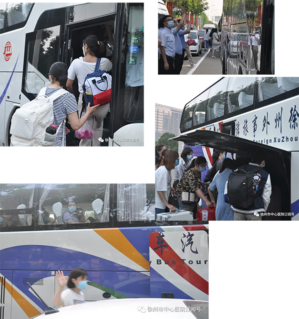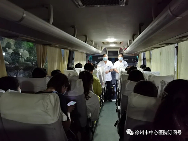 次日凌晨,徐州市中心醫(yī)院黨委書記王培安,黨委副書記、院長楊晶在大巴車上為大家送行,鼓勁加油,期待平安歸來。
