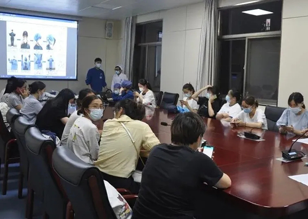 隨后,臨時黨支部召開了第一次會議,就此次任務(wù)的注意事項等進(jìn)行了分工組織,并請去年支援武漢的ICU的3位有經(jīng)驗的護(hù)士現(xiàn)場進(jìn)行面對面的再培訓(xùn)、再教育。
