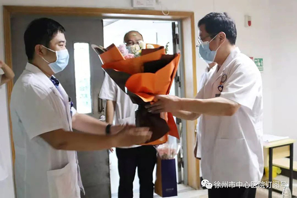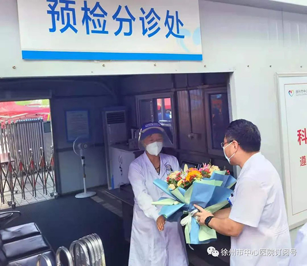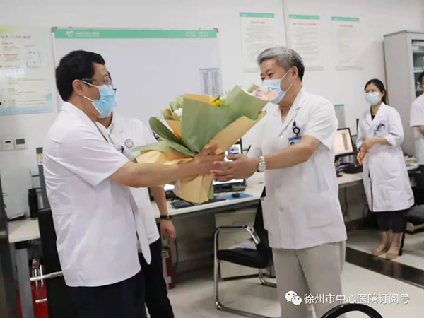 黃淮網(wǎng) 8月19日是第四個中國醫(yī)師節(jié)。當天上午,徐州市中心醫(yī)院黨委書記王培安,黨委副書記、院長楊晶,黨委委員、副院長崔懷信、殷海濤,在相關職能科室的陪同下,深入臨床親切看望慰問了10位奮戰(zhàn)一線的醫(yī)務工作者代表,同時祝全院醫(yī)務人員節(jié)日快樂!