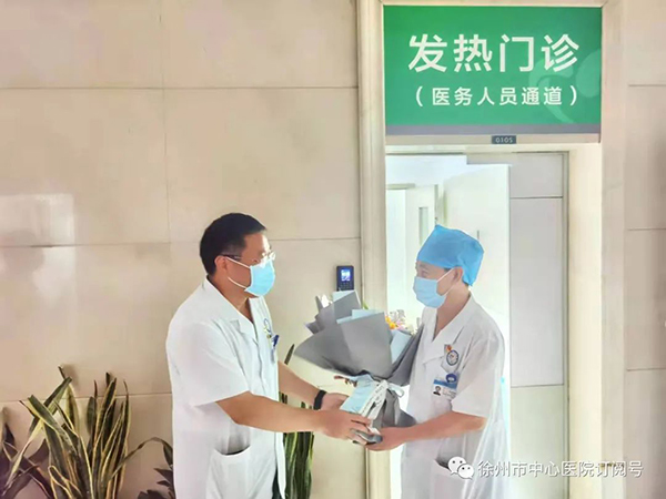 王培安慰問發(fā)熱門診醫(yī)生代表秦兆習