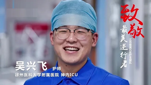 2020年2月11日吳興飛參加江蘇援湖北黃石醫(yī)療隊,主要負責重癥病人護理工作。他與重癥醫(yī)學科主治醫(yī)師卜林和主管護師蔣明琛守在重癥病區(qū),直到3月27日黃石最后一位病人治愈出院,他們是最后一批撤回來的江蘇援黃石隊員。吳興飛以精湛的護理技術和敢于擔當?shù)膶嶋H行動,贏得了戰(zhàn)疫同事們的高度評價和認可。因為表現(xiàn)突出,他被江蘇省委宣傳部評為“江蘇最美青年醫(yī)務工作者”。