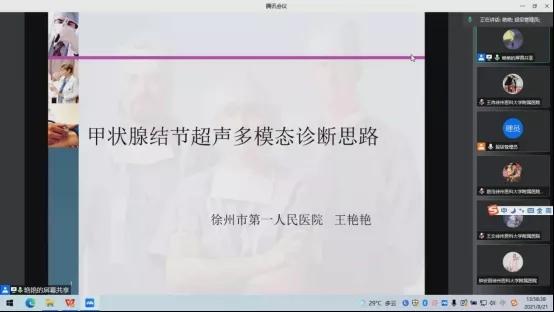 鑒于疫情原因,此次學(xué)習(xí)班采用線上授課方式進(jìn)行。學(xué)習(xí)班日程共進(jìn)行三天,以超聲新技術(shù)的應(yīng)用和研究為中心,學(xué)習(xí)內(nèi)容包括:胎兒早孕期及中孕早期超聲篩查及質(zhì)量控制、雙胎妊娠的超聲檢查及2021版最新指南解讀、胎兒心臟超聲檢查、腎動(dòng)脈狹窄超聲診斷、盆底超聲檢查、乳腺超聲診斷、甲狀腺結(jié)節(jié)超聲多模態(tài)診斷新進(jìn)展等,并進(jìn)行了大量的實(shí)際病例演示,結(jié)合臨床實(shí)踐與大家進(jìn)行了分享,同時(shí)在線收看人數(shù)近500人,使廣大學(xué)員受益匪淺,并通過徐州超聲醫(yī)師群、徐州大婦產(chǎn)、醫(yī)聯(lián)體各單位聯(lián)系群等微信群進(jìn)行轉(zhuǎn)發(fā)、直播,擴(kuò)大了醫(yī)院及科室在徐州及淮海經(jīng)濟(jì)區(qū)的影響力。