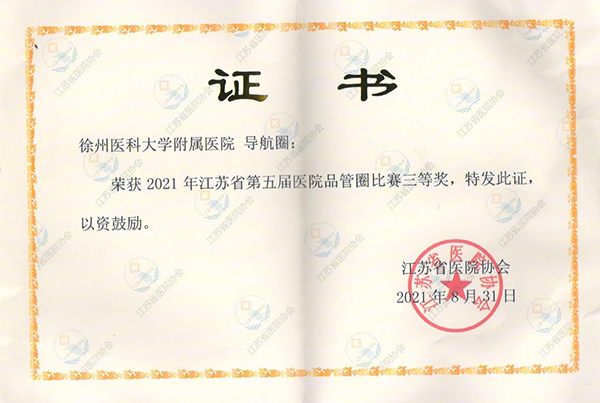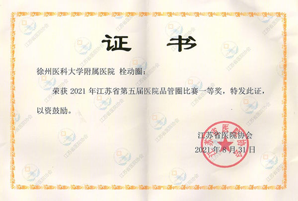 為貫徹落實(shí)《關(guān)于推動(dòng)公立醫(yī)院高質(zhì)量發(fā)展的意見》,全力推進(jìn)醫(yī)院高質(zhì)量發(fā)展,努力實(shí)現(xiàn)醫(yī)院精細(xì)化管理模式,提高科學(xué)管理水平,2021年8月12~15日,江蘇省醫(yī)院協(xié)會(huì)舉辦了第五屆醫(yī)院品管圈比賽。本次品管圈比賽采用線上評(píng)審形式,共308個(gè)來自全省各級(jí)各類醫(yī)療機(jī)構(gòu)圈組報(bào)名參加比賽。經(jīng)過激烈角逐,評(píng)出一等獎(jiǎng)33圈、二等獎(jiǎng)61圈、三等獎(jiǎng)91圈、優(yōu)秀獎(jiǎng)123圈。徐州醫(yī)科大學(xué)附屬醫(yī)院護(hù)理部選送的兩個(gè)圈組均取得優(yōu)異成績(jī),“栓動(dòng)圈”榮獲三級(jí)醫(yī)院護(hù)理組一等獎(jiǎng),“導(dǎo)航圈”榮獲課題研究組三等獎(jiǎng)。
