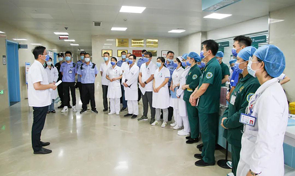 演練模擬了急診醫(yī)學科搶救的一名危重患者疑似感染新冠肺炎,從醫(yī)療處置、信息上報、個人防護、流調(diào)溯源、封控封閉、專家會診、患者轉運、環(huán)境消殺、核酸檢測、隔離觀察等諸多環(huán)節(jié)對我院面對新冠疫情的防控能力、快速應對能力和處置能力進行了檢驗。