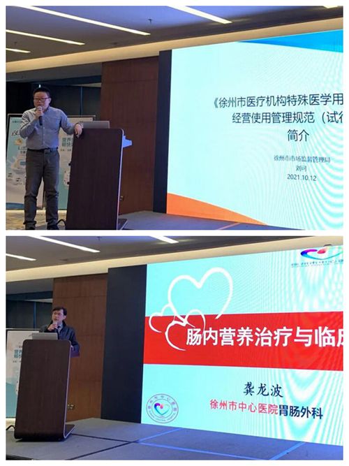 交流會對《徐州市醫(yī)療機構(gòu)特殊醫(yī)學用途配方食品經(jīng)營使用管理規(guī)范(試行)》進行了解讀,特醫(yī)食品生產(chǎn)和使用單位的專家分享了《FSMP院內(nèi)管理流程思考》《腸內(nèi)營養(yǎng)治療與臨床》及《特醫(yī)產(chǎn)業(yè)發(fā)展現(xiàn)狀》。