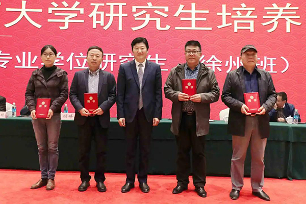 彭代銀校長為徐州市中醫(yī)院4位導(dǎo)師代表頒發(fā)聘書。