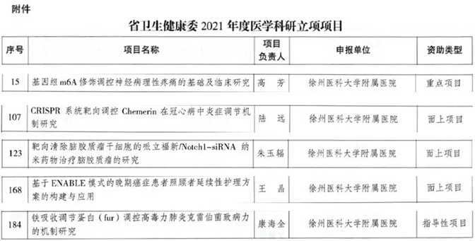 徐醫(yī)附院在2021年度江蘇省衛(wèi)生健康委醫(yī)學(xué)引進(jìn)新技術(shù)評估和醫(yī)學(xué)科研立項項目中再傳佳績