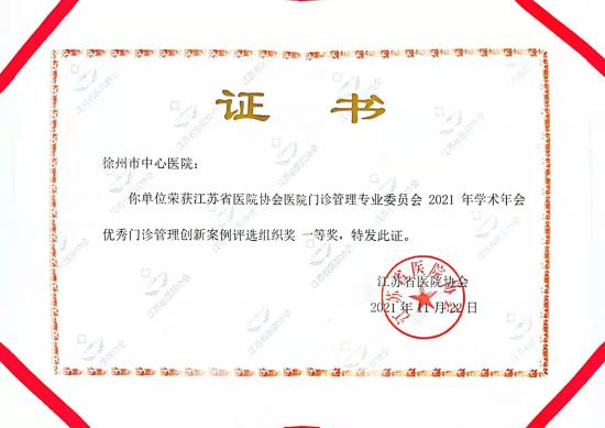 徐州市中心醫(yī)院在江蘇省優(yōu)秀門診管理創(chuàng)新案例評比中獲多項佳績