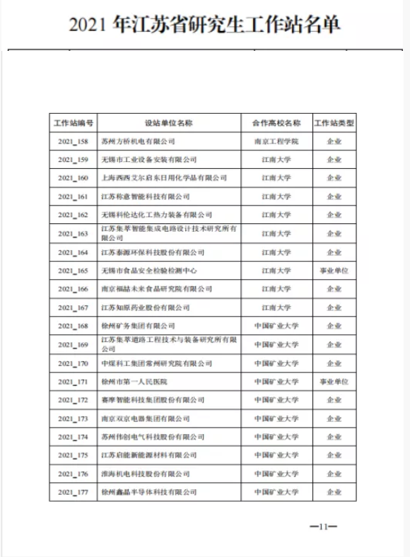 黃淮網(wǎng) 近日,從江蘇省教育廳和江蘇省科學(xué)技術(shù)廳發(fā)布的《關(guān)于公布2021年江蘇省研究生工作站和優(yōu)秀研究生工作站示范基地名單的通知》(蘇教研函〔2021〕20號)文件獲悉,經(jīng)過單位申報(bào)、材料審查、專家評審、網(wǎng)上公示等嚴(yán)格程序,徐州市第一人民醫(yī)院獲批“江蘇省研究生工作站”(資格認(rèn)定有效期4年)。徐州市第一人民醫(yī)院“醫(yī)工結(jié)合、醫(yī)教融合”科技創(chuàng)新工作再上新臺階。