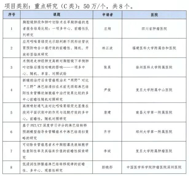 項(xiàng)目2021年9月9日正式啟動,根據(jù)各“卓越外科科研協(xié)作組”成員中心的臨床綜合能力、學(xué)術(shù)影響力及研究背景確定各單位可申報類別。項(xiàng)目共收到107份有效申請方案,其中戰(zhàn)略項(xiàng)目(A類)16份、重大項(xiàng)目(B類)34份、重點(diǎn)項(xiàng)目(C類)57份,資助率低,競爭激烈。項(xiàng)目學(xué)術(shù)委員會根據(jù)評審標(biāo)準(zhǔn),評選出2個A類項(xiàng)目、4個B類項(xiàng)目、8個C類項(xiàng)目。張昊主任在C類57個申請項(xiàng)目中排名第3獲得資助,其后將作為牽頭PI領(lǐng)銜全國多中心臨床研究。