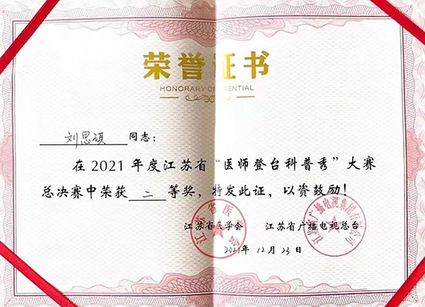 黃淮網(wǎng) 2021年12月23日,第三屆江蘇省“醫(yī)師登臺科普秀”總決賽在江蘇省廣播電視總臺800平米演播大廳舉行,徐州市第一人民醫(yī)院醫(yī)學(xué)檢驗科劉思琪榮獲二等獎。25位選手臺風(fēng)穩(wěn)健、各有特色,專家認真評點、妙語連珠。經(jīng)過近4小時的激烈比拼,各獎項最終決出。