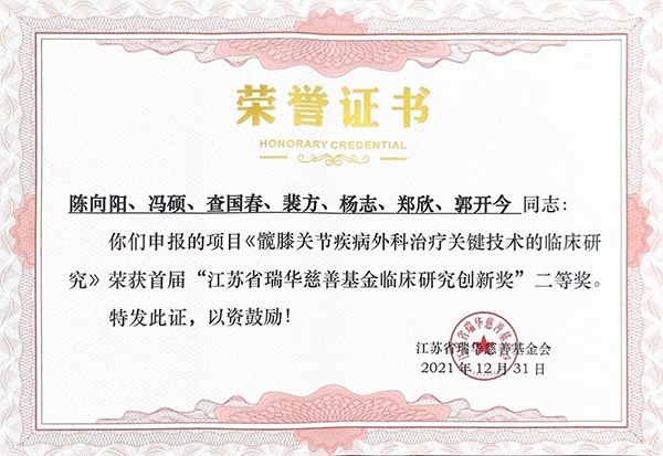 徐醫(yī)附院骨關(guān)節(jié)科陳向陽團隊喜獲江蘇省瑞華慈善基金會臨床研究創(chuàng)新二等獎