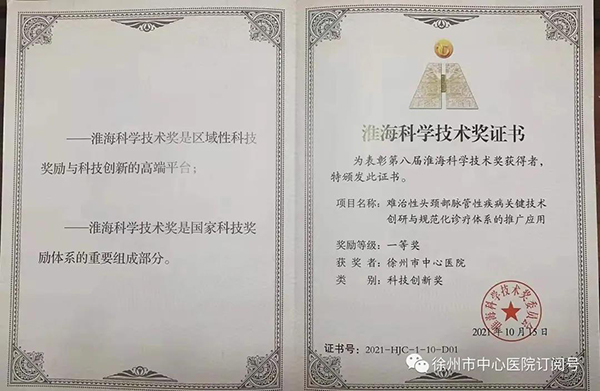 徐州市中心醫(yī)院孟箭團隊項目獲第八屆淮?茖W技術(shù)獎一等獎