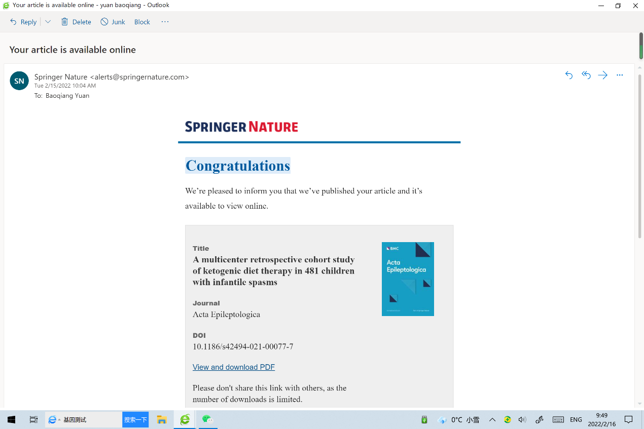 黃淮網(wǎng) 2022年2月15日,徐州醫(yī)科大學(xué)附屬醫(yī)院兒童康復(fù)中心發(fā)起、袁寶強(qiáng)教授作為共同通訊作者參與的,全國多中心生酮飲食治療嬰兒痙攣癥的病例研究成果,在權(quán)威性癲癇雜志《Acta Epileptologica》上正式發(fā)表。