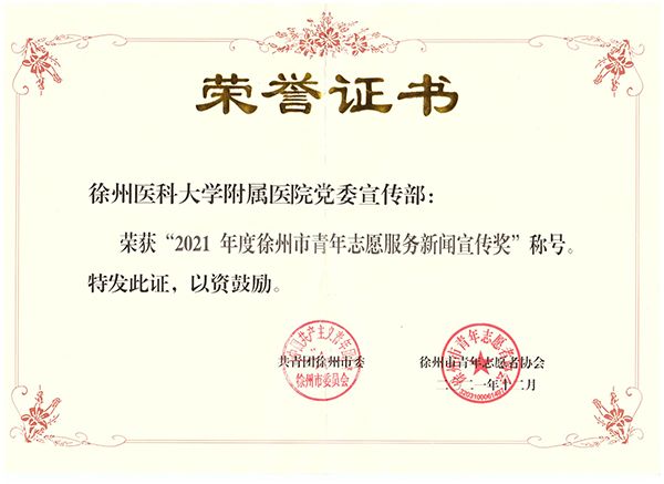 黃淮網(wǎng)(杜雨桐)為引導(dǎo)廣大青年開展志愿服務(wù),推動全市青年志愿服務(wù)事業(yè)廣泛深入發(fā)展。近日,共青團徐州市委員會印發(fā)《關(guān)于通報表揚2021年度徐州市青年志愿者行動先進(jìn)典型的決定》(徐青協(xié)聯(lián)(2021)16號),評選出10個“徐州市青年志愿服務(wù)新聞宣傳獎”以及20個“徐州市青年志愿服務(wù)行動優(yōu)秀組織獎”,徐州醫(yī)科大學(xué)附屬醫(yī)院黨委宣傳部、團委工作突出,成績顯著,分別喜獲殊榮。