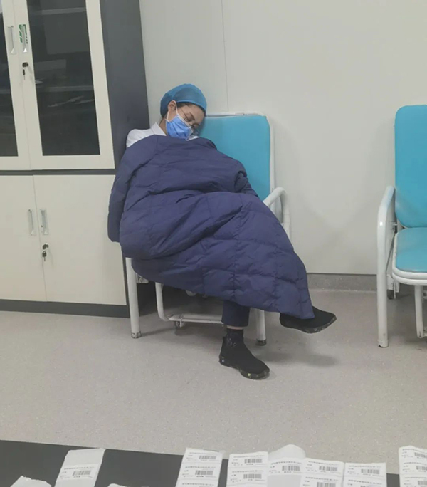 忙碌是檢驗科的標(biāo)簽。每天早上7:30進(jìn)實驗室,下午3:30才能出來吃“遲到”的午餐;檢測過程中,為了少上或不上廁所,大家盡量幾個小時不喝水、不吃東西;許多標(biāo)本檢測任務(wù)常常凌晨三四點才能結(jié)束,隨后進(jìn)行醫(yī)療廢棄物清理、消毒、開啟紫外燈······等所有工作完成,天已經(jīng)亮了。