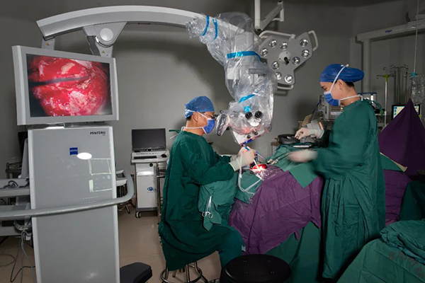科室有神經(jīng)外科專用手術室5間,其中百級層流手術間4間、萬級層流手術間1間,并配備專職的神經(jīng)外科麻醉和護理團隊,年完成神經(jīng)外科手術量3000余臺,三、四級手術率85%,在江蘇省名列前茅,在蘇北及淮海經(jīng)濟區(qū)遙遙領先。目前常規(guī)開展前、后循環(huán)動脈瘤手術治療,腦血管畸形顯微手術治療;顱底腫瘤如垂體瘤、巖斜區(qū)腫瘤、顱眶溝通腫瘤、腦干腫瘤等各種神經(jīng)外科復雜病變的手術治療,達國內(nèi)先進水平。