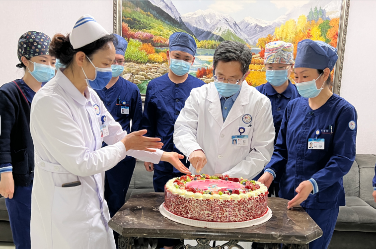 5月10日上午,在院的領(lǐng)導(dǎo)班子成員,來到手術(shù)室、重癥監(jiān)護(hù)室等科室,慰問一線護(hù)理工作者,并為他們送上鮮花、蛋糕以及節(jié)日的祝福。