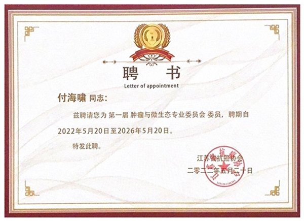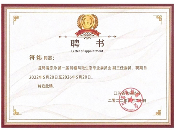 徐醫(yī)附院胃腸外科符煒主任當(dāng)選江蘇省抗癌協(xié)會腫瘤與微生態(tài)專委會副主委