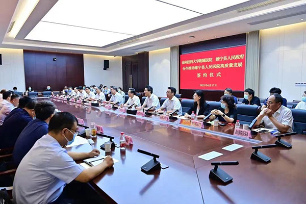 睢寧縣委辦公室、縣政府辦公室、組織部、編辦、醫(yī)保局、經(jīng)發(fā)局、財政局、人社局、審計(jì)局、縣衛(wèi)健委、人民醫(yī)院全體班子成員參加簽約儀式。