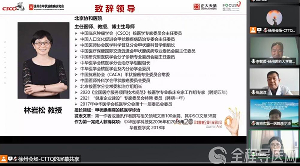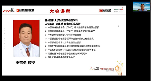 本次會(huì)議內(nèi)容豐富多彩,來(lái)自國(guó)內(nèi)甲狀腺外科、核醫(yī)學(xué)科、超聲醫(yī)學(xué)科、病理科等方向的眾多知名專家匯聚云端,共同探討甲狀腺癌診療發(fā)展的焦點(diǎn)、熱點(diǎn)問(wèn)題,通過(guò)精彩學(xué)術(shù)報(bào)告、病例分享,為與會(huì)者呈現(xiàn)了甲狀腺癌診療新技術(shù)、新進(jìn)展等精彩內(nèi)容。北京協(xié)和醫(yī)院林巖松教授分享《全球甲狀腺癌臨床研究現(xiàn)狀和展望》、徐州醫(yī)科大學(xué)附屬醫(yī)院李智勇教授分享《兒童及青少年分化型甲狀腺癌核醫(yī)學(xué)診治中國(guó)專家共識(shí)(2022版)解讀》、青島市立醫(yī)院王昊教授分享《安羅替尼機(jī)制和靶點(diǎn)解讀》、北京協(xié)和醫(yī)院孫迪醫(yī)生分享了《安羅替尼靶向治療病例一則》、徐州醫(yī)科大學(xué)附屬醫(yī)院張慶華教授及南京市第一醫(yī)院李少華教授就臨床甲癌病例進(jìn)行了分享和詳細(xì)分析。