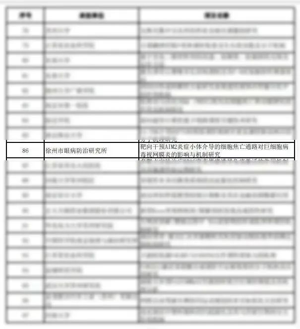 黃淮網(wǎng)(李莉 李泳 席紀(jì)江) 近日,從江蘇省科學(xué)技術(shù)廳傳來喜訊:徐州市第一人民醫(yī)院眼科實(shí)驗(yàn)室喬磊博士申報(bào)的課題《靶向干預(yù)AIM2炎癥小體介導(dǎo)的細(xì)胞焦亡通路對(duì)巨細(xì)胞病毒視網(wǎng)膜炎的影響與機(jī)制研究》獲批2022年江蘇省自然科學(xué)基金-面上項(xiàng)目立項(xiàng)資助。這是徐州市第一人民醫(yī)院2021年獲得國家自然科學(xué)基金資助和江蘇省自然科學(xué)基金資助項(xiàng)目后,再次獲批江蘇省自然科學(xué)基金資助項(xiàng)目,標(biāo)志著徐州市一院基礎(chǔ)研究科技水平再上新臺(tái)階。