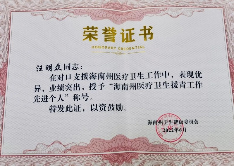 黃淮網(wǎng) 近日,一份青海省興?h海南州衛(wèi)生健康委員會(huì)寄出的“海南州醫(yī)療衛(wèi)生援青工作先進(jìn)個(gè)人”的表彰決定和榮譽(yù)證書(shū)攜著興?h人民濃濃的牽掛和敬意跨越1800多公里疆域被送至徐州市第一人民醫(yī)院兒科主任醫(yī)師汪明眾的手中。