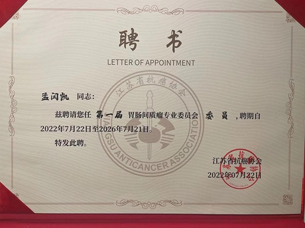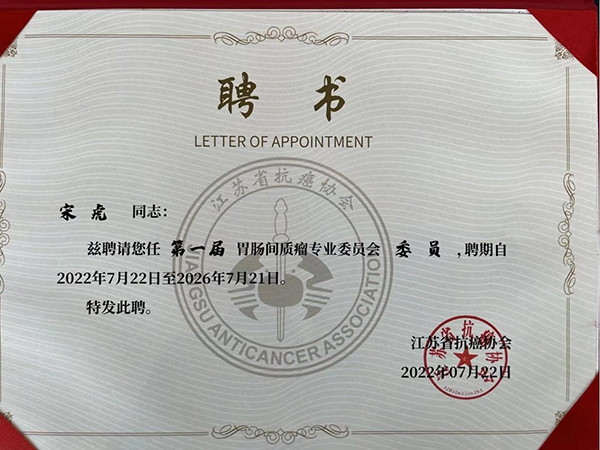 徐醫(yī)附院三位專家當選江蘇省抗癌協(xié)會胃腸間質(zhì)瘤專業(yè)委員會首屆委員