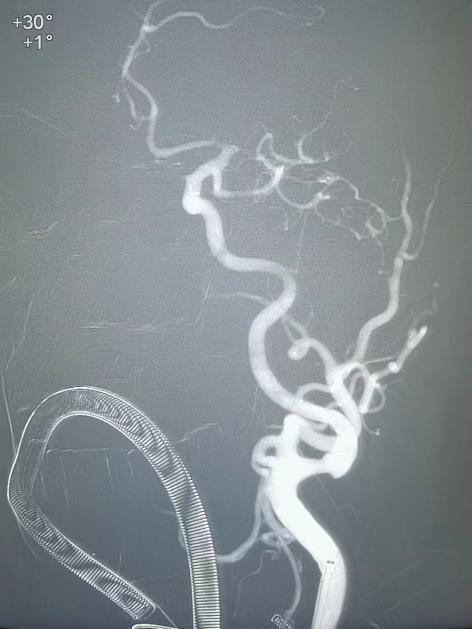 目前徐大爺?shù)念^顱CT未見責(zé)任病灶,仍存在介入的手術(shù)的指征,在與家屬積極溝通病情并告知手術(shù)風(fēng)險后,史江峰主任緊急安排手術(shù)治療。在麻醉科與介入科通力合作下,徐大爺?shù)娜∷ㄊ中g(shù)進展順利,生命體征逐漸平穩(wěn)。目前徐大爺恢復(fù)尚可,在NCU接受進一步對癥治療。