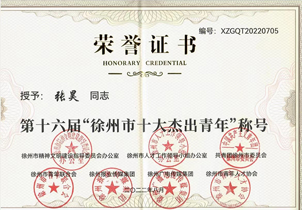 徐醫(yī)附院胸外科張昊主任榮獲“徐州市十大杰出青年”