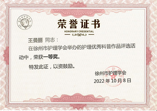 徐醫(yī)附院護(hù)理團(tuán)隊(duì)榮獲徐州市護(hù)理學(xué)會(huì)優(yōu)秀科普一等獎(jiǎng)兩項(xiàng)