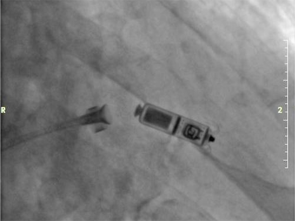 手術(shù)在科主任梁田帶領(lǐng)下,電生理團(tuán)隊(duì)劉敏主任、盧磊主任共同上臺(tái)完成。在局部麻醉下,通過股靜脈穿刺,將起搏器通過導(dǎo)管植入到心腔內(nèi)部,術(shù)中Micra AV無(wú)導(dǎo)線起搏器僅一次釋放即成功,釋放位置精準(zhǔn),手術(shù)全程時(shí)間約40分鐘,患者術(shù)后反應(yīng)良好,6小時(shí)后即可下床走動(dòng)。